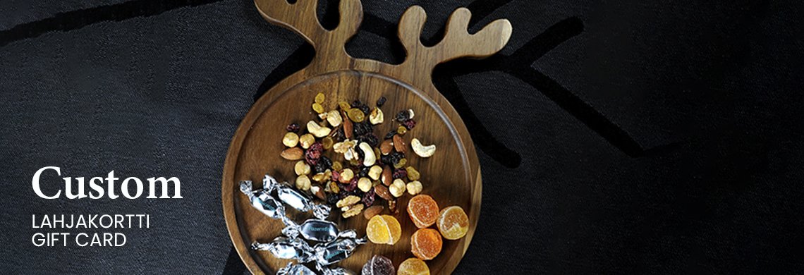 Meiltä löydät myös 15 valmiiksi teemoitettua lahjakorttia, joiden arvot vaihtelevat 15 eurosta aina 500 euroon.