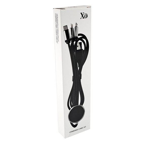 Käytännöllinen 4 in 1 latauskaapeli. Piuhojen liittymäkohdassa on erinomainen paikka logolle – kaiverruskohtaan osuva LED-valo heijastaa logon näyttävästi. Sisältää seuraavat latauspäät: USB+Type-C 2in1, Micro-USB, Type C, Lightning. Kaapelin kokonaispituus 120 cm.
