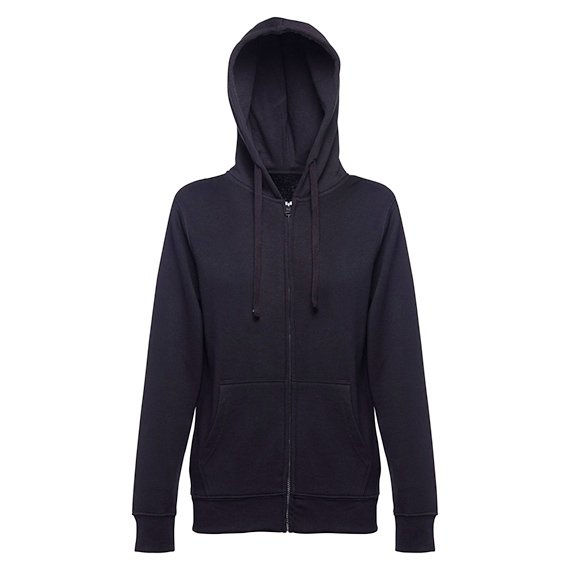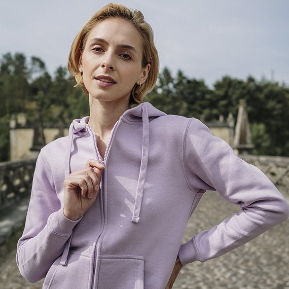 Naisten huppari täyspitkällä vetoketjulla on valmistettu 50 % puuvillasta ja 50 % polyesteristä. Hupussa on sävy sävyyn nyöri. Hupparin sisäpuoli on kammattu, sivuilla on kaksi sivutaskua, ribbineulos hihansuissa ja helmassa sekä kätevä vetoketju liukusäätimellä. Entsyymikäsitelty. 320 g/m2. Mitat S-XXL.