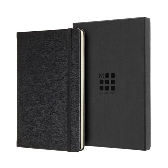 Ensiluokkainen nahka sekä Moleskinen klassinen muistikirja yhdessä. Musta nahkakantinen muistikirja, johon voit kirjoittaa ylös tärkeimmät ajatuksesi sekä ideasi, olit sitten kotona, matkalla tai toimistolla. Koko 13 X 21 cm. Kova kansi, 176 viivoitettua sivua.