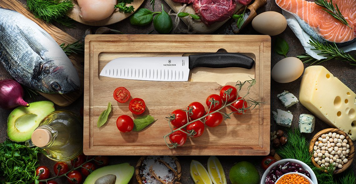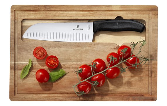 Laadukkaan välineet tekevät ruoan valmistuksesta arkipäivän pienen luksushetken. Lämpimän sävyinen akaasiapuuleikkuulauta on kotikokin luottoystävä. Akaasiapinnalla viipaloit vaivattomasti lempiraaka-aineesi herkkuruoaksi. Leikkuulaudan syvennykseen sopii mainiosti Victorinoxin korkealaatuinen Santoku-veitsi, jolla leikkaat tarkasti ja kevyesti.