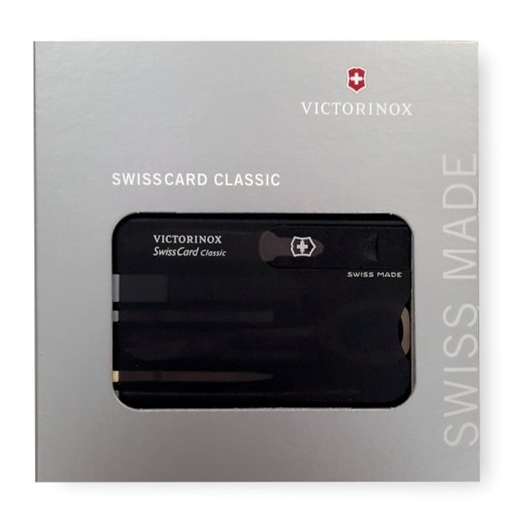 SwissCard on täynnä työvälineitä, ja se on todellinen sveitsiläinen innovaatio kompaktissa muotoilussa. Silti se mahtuu helposti lompakon luottokorttipaikkaan. Työkalussa on 10 erilaista toimintoa: kynsiviila, ruuvari (2,5 mm), hammastikku, paineistettu kuulakärkikynä, pinsetit, nuppineula, kirjeenavaaja, sakset, senttimitta ja tuumamitta. Työkalut valmistettu ruostumattomasta teräksestä. Pituus 82 mm, korkeus 4,5 mm, paino 26 g.