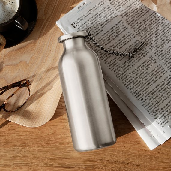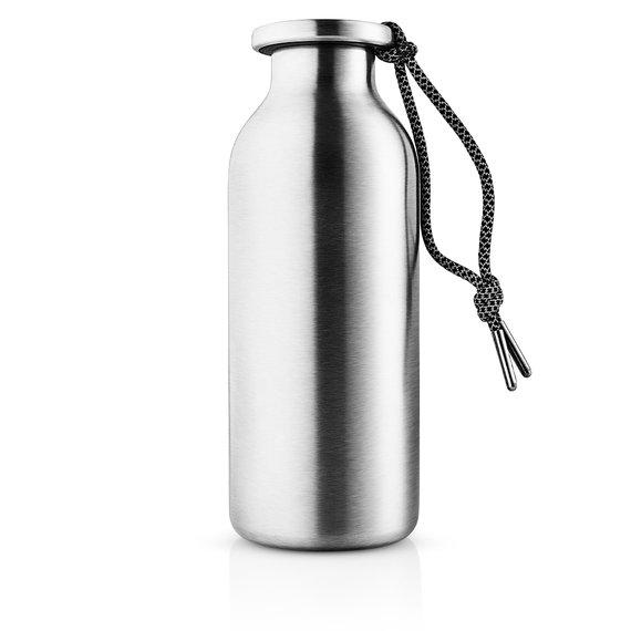 Modernin tyylikäs termospullo pitää juoman kylmänä 24 h tai kuumana 12 h. Pullon korkki on 100 % vesitiivis, joten sen voi huoletta sujauttaa laukkuun pelkäämättä sen vuotamista. Kätevän nauhan ansiosta pulloa on helppo kantaa mukana tai ripustaa vaikka pyörän kahvasta roikkumaan. Valmistettu ruostumattomasta teräksestä. Tilavuus 0,5l. Koko: 19.5 x Ø: 7.5 cm.