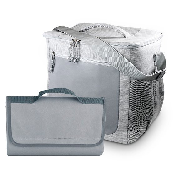 Lahjasetti sisältää tilavan 14 L kylmälaukun sekä käytännöllisen piknik maton, joka suojaa eväsretkeilijöitä kosteudelta ja lialta.
