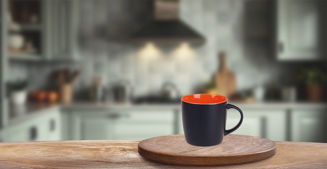 Erittäin suosittu mainosmuki, jossa on moderni, matta lasite. Kiiltävä, värikäs sisäpuoli luo erinomaisen kontrastin mustan satiinisen ulkopinnan kanssa. Toimitusaika vedoksen hyväksymisestä noin 5 vkoa. Hinnat sisältävät mukin ilman painatusta, pyydäthän tarjouksen haluamallesi painatukselle erikseen.