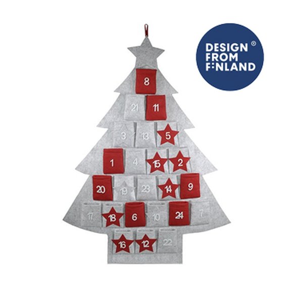 Kuusen muotoinen seinälle ripustettava joulukalenteri. Piilota lokeroihin yllätyksiä ja aloita lähtölaskenta jouluun yhdessä perheen tai työkavereiden kanssa. Täydellinen tuote koko perheelle tai hauska aktiviteetti toimistolle. Mitat 90 x 70 cm.