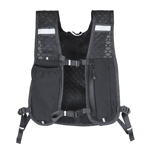 Liivin etupuolella vetoketjullinen tasku puhelimelle tai pienille tarvikkeille sekä pullotasku. Selkäpuolella on 3,5 L vetoketjullinen tasku, johon mahtuu esimerkiksi 1,5 L juomarakko tai pieni paino.