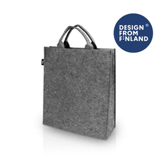 Kierrätysmuovista valmistettu huopakassi on kevyt ja kestävä. Sen valmistukseen on käytetty 8 kappaletta 0,5 litran PET-pulloa. Se on loistava lahjakassi, messukassi ja ostoskassi, jonka voi logopainettuna jakaa ylpeydellä asiakkaille ja henkilökunnalle. Tämä kassi jää jokaiselle varmasti myös aktiiviseen käyttöön, sillä se on tukeva ja reilun kokoinen. Kassin materiaali on 2 mm paksua huopaa, joka on taitettu kantokahvojen kohdalta kaksin kerroin. Kahvojen pituus 29 cm. Kassin korkeus 40 cm, leveys 35 cm ja pohjalevikkeen syvyys 15 cm.