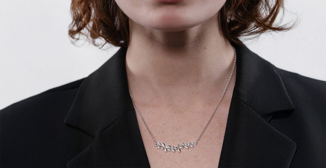 Dreams Come True Necklace – The pendant of this silver Haave necklace features a delicate lace-like pattern made from small matte buds, creating an elegant and intricate design. It fastens with a spring ring clasp and has an adjustable length of 42/45 cm.