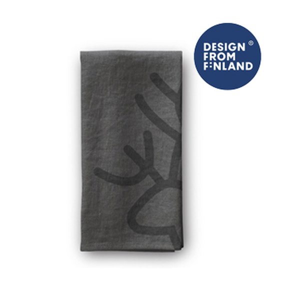 Kotimaista tunnelmaa keittiöön. Ihanalla porokuosilla varustettu tummakuosinen keittiöpyyhe tuo suomalaisen luonnon osaksi sisustusta. Kangas 48 % pellavaa, 52 % puuvillaa. Koko 47 x 70 cm. Väri: musta / harmaa.