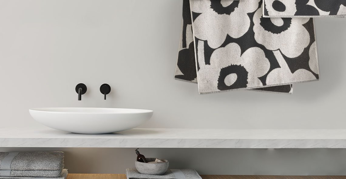 Luomupuuvillafroteesta valmistetussa kylpypyyhkeessä on Unikko-kuosi. Värit on päinvastaiset pyyhkeen toisella puolella. Luovuutta ja rohkeutta symboloiva Unikko syntyi aikana, jolloin Marimekon kuviomaailmaan ei juuri kuulunut kukkia. Maija Isolaa kukka-aihe kuitenkin kiinnosti, ja hän päätti suunnitella kokonaisen sarjan uudenlaisia vahvoja kukkakuoseja.