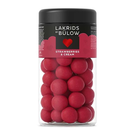 Löydä punaisten kirpeiden mansikoiden, valkoisen pehmeänmakuisen kerman ja makean lakritsin tasapainoinen kokonaisuus. Valkosuklaa sitoo maut yhteen ja tarjoaa uskomattoman annoksen herkullista tanskalaista rakkautta. Ei sisällä gluteiinia eikä liivatetta. 270 g.