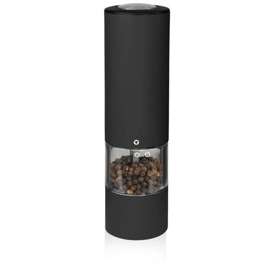 Paristoilla toimiva elektroninen maustemylly pippurille ja suolalle. Myllyssä on kestävä keraaminen koneisto, ja pohjassa oleva valo valaisee käytön aikana. Läpinäkyvän osion ansiosta myllyn sisällön näkee helposti. Mausteiden karkeus on säädettävissä. Tuote sisältää paristot (6 x AAA). Mitat 18,5 x 5 cm.