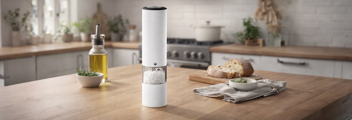 Paristoilla toimiva elektroninen maustemylly pippurille ja suolalle. Myllyssä on kestävä keraaminen koneisto, ja pohjassa oleva valo valaisee käytön aikana. Läpinäkyvän osion ansiosta myllyn sisällön näkee helposti. Mausteiden karkeus on säädettävissä. Tuote sisältää paristot (6 x AAA). Mitat 18,5 x 5 cm.