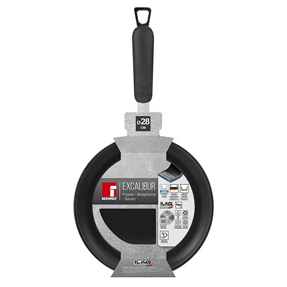 Bergner Excalibur -paistinpannu on valmistettu taotusta alumiinista, jonka kestävä kolmikerrosrakenne takaa tasaisen lämmön jaon sekä kestävän rakenteen. Pannun sisäosassa on käytetty Ilag Xeradur2 -Non-stick -keraamista pinnoitetta, joka on PFOA-vapaa. Excalibur-pannu sopii kaikille liesityypeillä. Suositellaan käsinpesua.