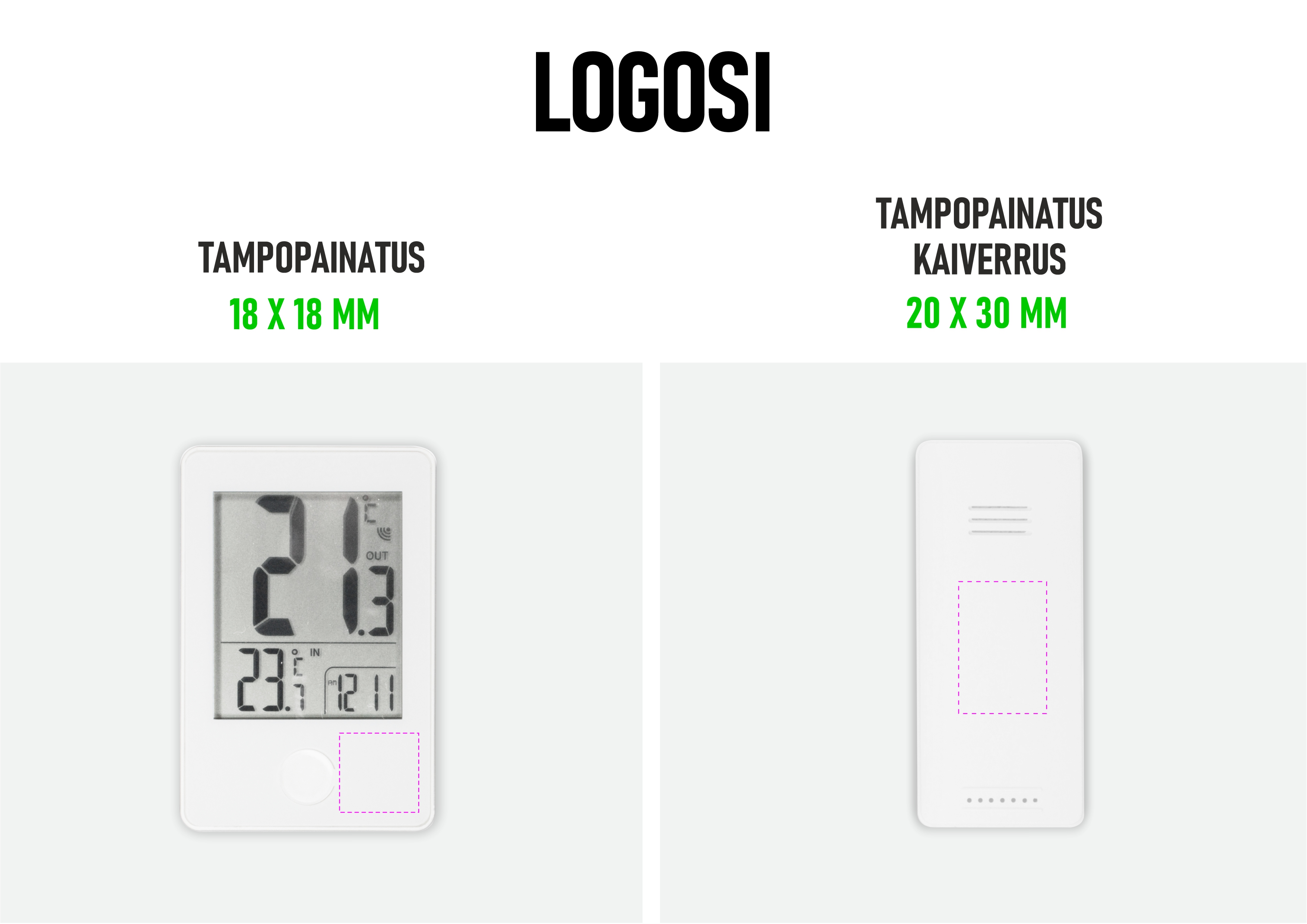 Mitäköhän sitä pukisi päälle? Frost sisä-/ulkomittarilla tarkistat käden käänteessä lämpötilan. ABS-muovista valmistettu paristoilla toimiva mittari osoittaa 0/+50°C sisälämpötilan ja -39,9/+59,9°C ulkolämpötilan. Mitat 60 x 22,5 x 90 mm. Laite toimii 4x AAA-paristolla.