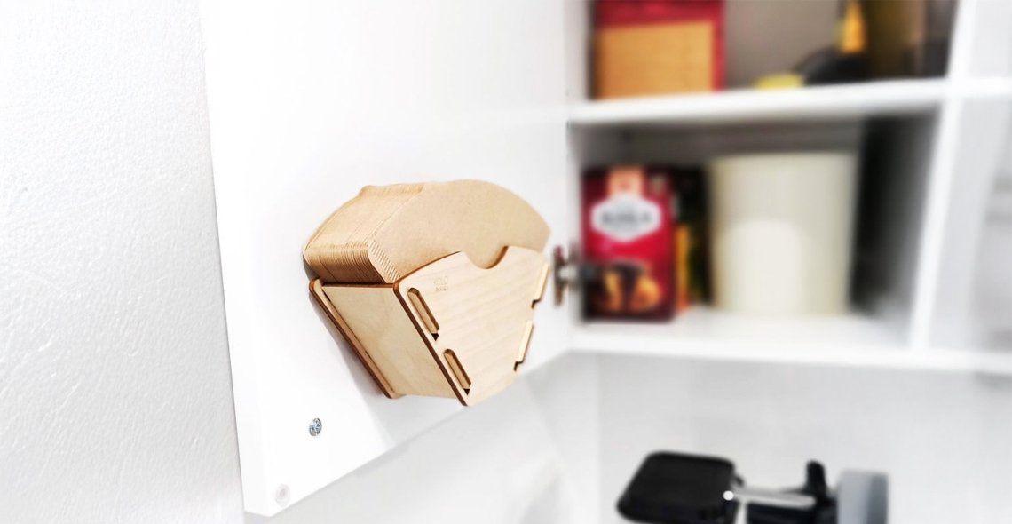 Tammivanerista valmistettu KOLO Designin suodatinpussiteline on kaunis ja käytännöllinen sisustuselementti, jonka voit ripustaa seinälle tai jättää pöydälle. Teline pitää suodatinpussit järjestyksessä ja helposti käytettävissä. Telineeseen mahtuu noin 100 suodatinpussia. Tuote on helposti postitettava, sillä pakatun tuotteen koko on vain 180 mm x 93 mm x 10 mm. Paino 100 g.