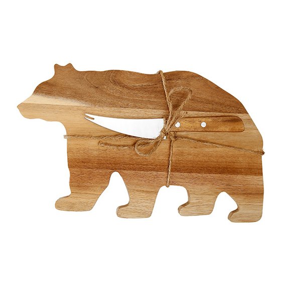 Metsän taikaa ja Suomen mytologiaa henkivä karhun muotoinen tarjoilualusta on valmistettu kauniista akaasiapuusta. Mukana lahjassa tulee tukeva juustoveitsi ruostumattomasta teräksestä, jonka runko on valmistettu myös akaasiapuusta. Tämä lahja sävähdyttää vaikkapa vientilahjana ulkomaille tai henkilökunnan lahjana joulun kynnyksellä. Laudan koko: 34,5 x 21 x 1,5 mm. Veitsen koko n. 10 x 1,5 cm. Lauta ja veitsi suositellaan pesemään ainoastaan käsin, vältä upottamasta niitä kokonaan veteen. Akaasiapuu ei kestä suuria lämpötilanvaihteluita, joten säilytyksessä kannattaa välttää suoraa auringonpoltetta.